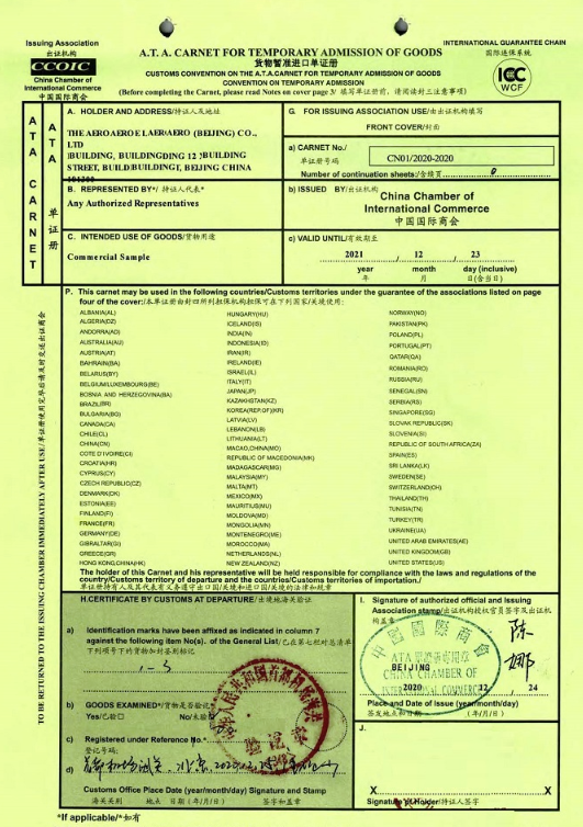 出口ATA單證冊(樣例)