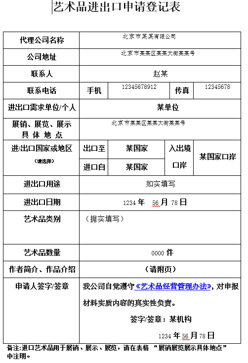 藝術(shù)品進(jìn)出口申請(qǐng)表(模板)