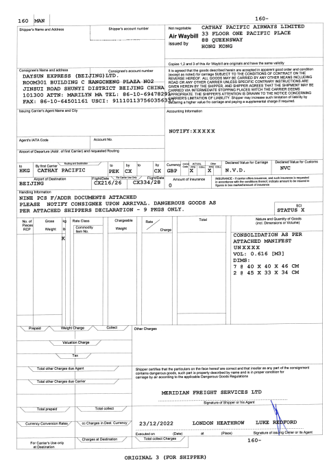 監(jiān)管庫危險品操作運單(樣例)