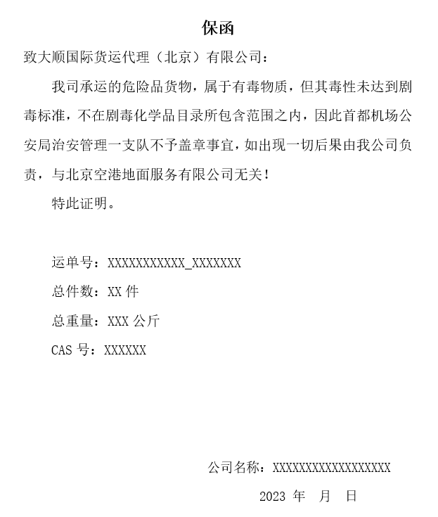 BGS有毒危品保函(模板)