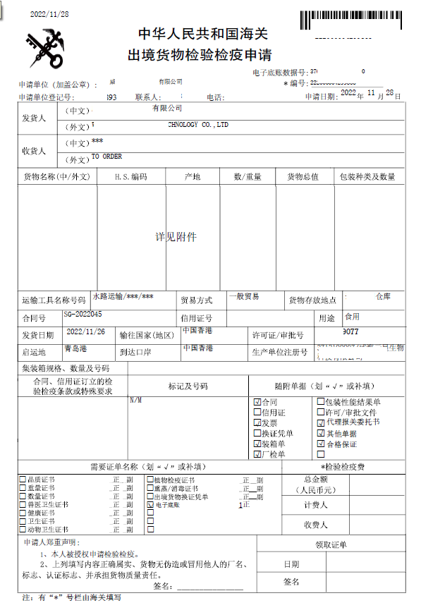 《出境貨物檢驗(yàn)檢疫申請(qǐng)》(樣例)
