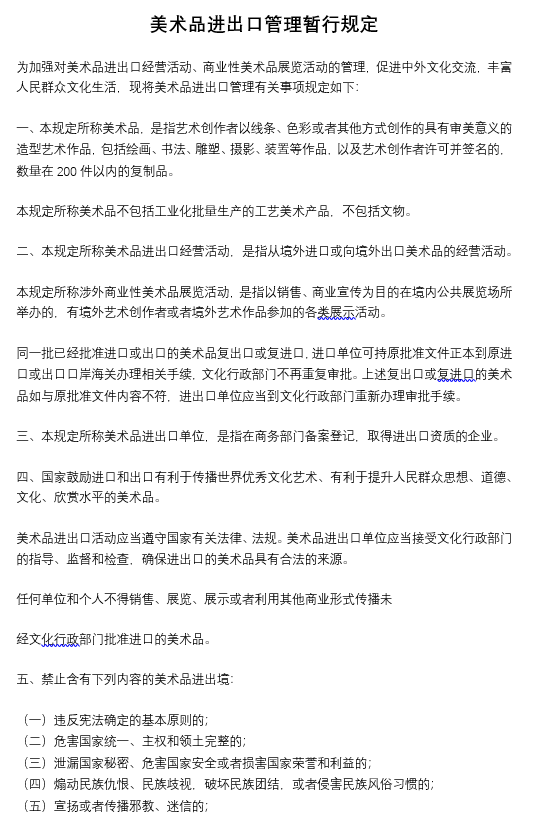 美術(shù)品進出口管理暫行規(guī)定