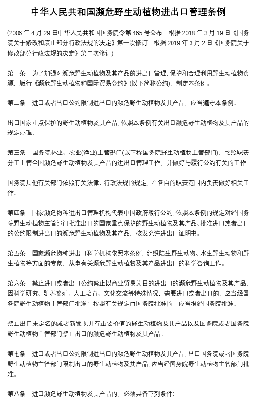 中華人民共和國瀕危野生動(dòng)植物進(jìn)出口管理?xiàng)l例