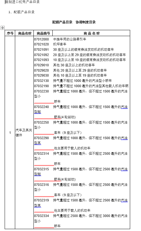 限制進(jìn)口機(jī)電產(chǎn)品目錄